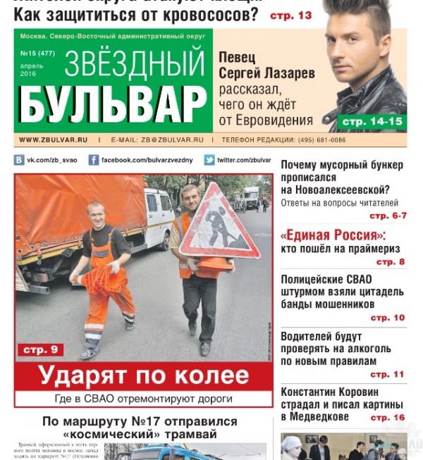 В последнем выпуске газеты «Своими именами» (№15 от 12 апреля 2016 г.) меня заинтересовала статья, а скорее открытое письмо прокурору Москвы В.В. Чурикову, с просьбой провести прокурорскую проверку законности издания и распространения Правительством Москвы газет, в которых они преподносят свою работу только с положительной стороны, тем самым влияя на наше с вами мнение за бюджетные средства.Речь идет о газетах, издаваемых во всех округах города, у нас, в СВАО, данное издание носит название «Звездный бульвар» (тираж 462 тыс. экземпляров, 20 полос, полноцветная печать). Заинтригованной статьей я решил повнимательнее изучить последний номер газеты «Звездный бульвар» (№14, апрель 2016г.), который как раз обнаружил в почтовом ящике.
