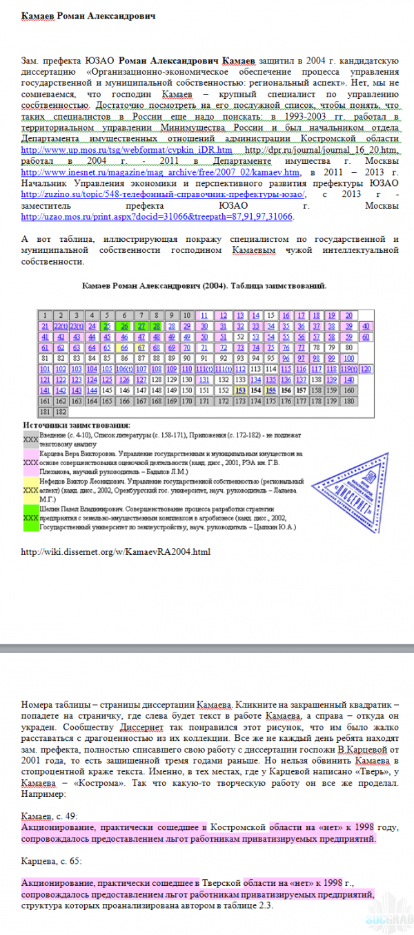1. Зам. префекта ЮЗАО Роман Александрович Камаев защитил в 2004 г. кандидатскую диссертацию «Организационно-экономическое обеспечение процесса управления государственной и муниципальной собственностью: региональный аспект».