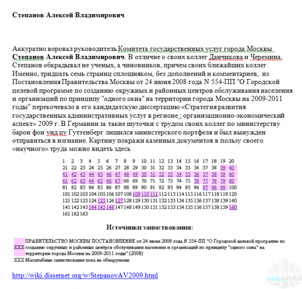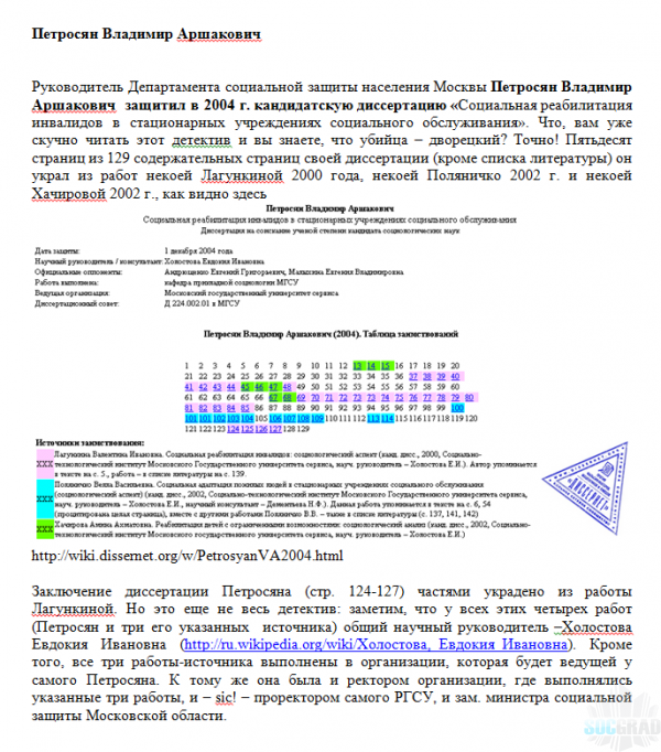 «Так что именно человек, укравший материалы для собственной диссертации, будет заниматься у нас контролем конфликтов интересов и следить, чтобы чиновники не воровали», — комментирует опубликованные данные оппозиционер А.Навальный.