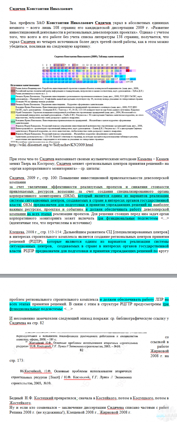 3. Зам. префекта ЗАО Константин Николаевич Сидячев украл в абсолютных единицах немного – всего лишь 108 страниц его кандидатской диссертации 2009 г. «Развитие инвестиционной деятельности в региональных девелоперских проектах».