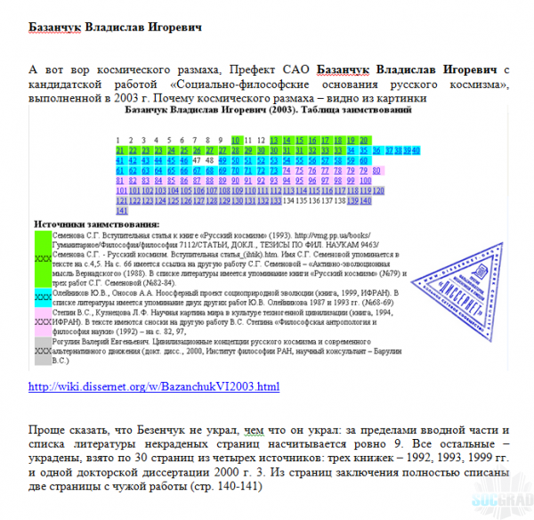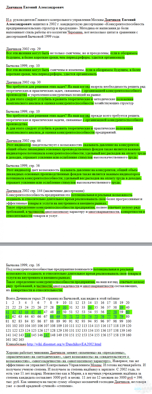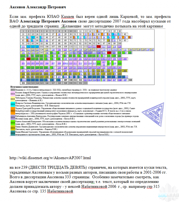 2. Зам. префекта ВАО Александр Петрович Аксенов свою диссертацию 2007 года насобирал кусками от одной до тридцати страниц.