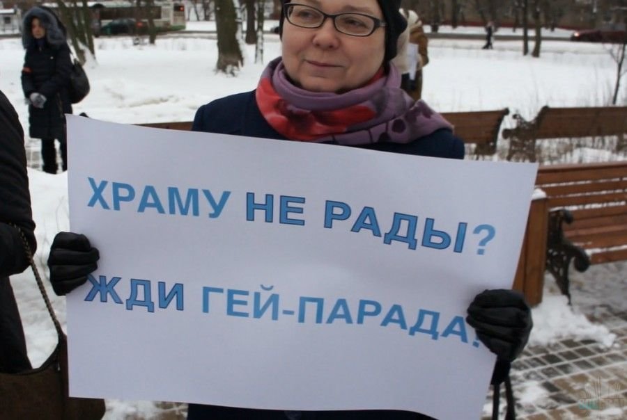 Зная о проведении митинга жителями района, в это же место организованно съехались православные активисты, которые выступают за строительство в сквере храмового комплекса. Организаторы «православного» митинга прикрывались верующими с детьми, которые приехали из разных районов с однотипными плакатами весьма провокационного содержания, подменяя понятия и позицию жителей Останкино: «Кто храмам чинит преграды лоббирует гей-парады», «Кто против храмы – тот против России», «Не дадим разрушить храм», «Храму не рады? Ждите гей-парада!».