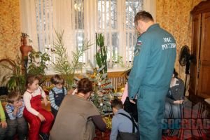 В завершении, Татьяна рассказала, чем нельзя украшать елку и основные ошибки уже наряженного дерева в кабинете дома культуры. Инспектор Иванов В.А. помог ребятам снять с елки те игрушки, которыми нельзя украшать и что нельзя подкладывать под елку. Дети сами убрали