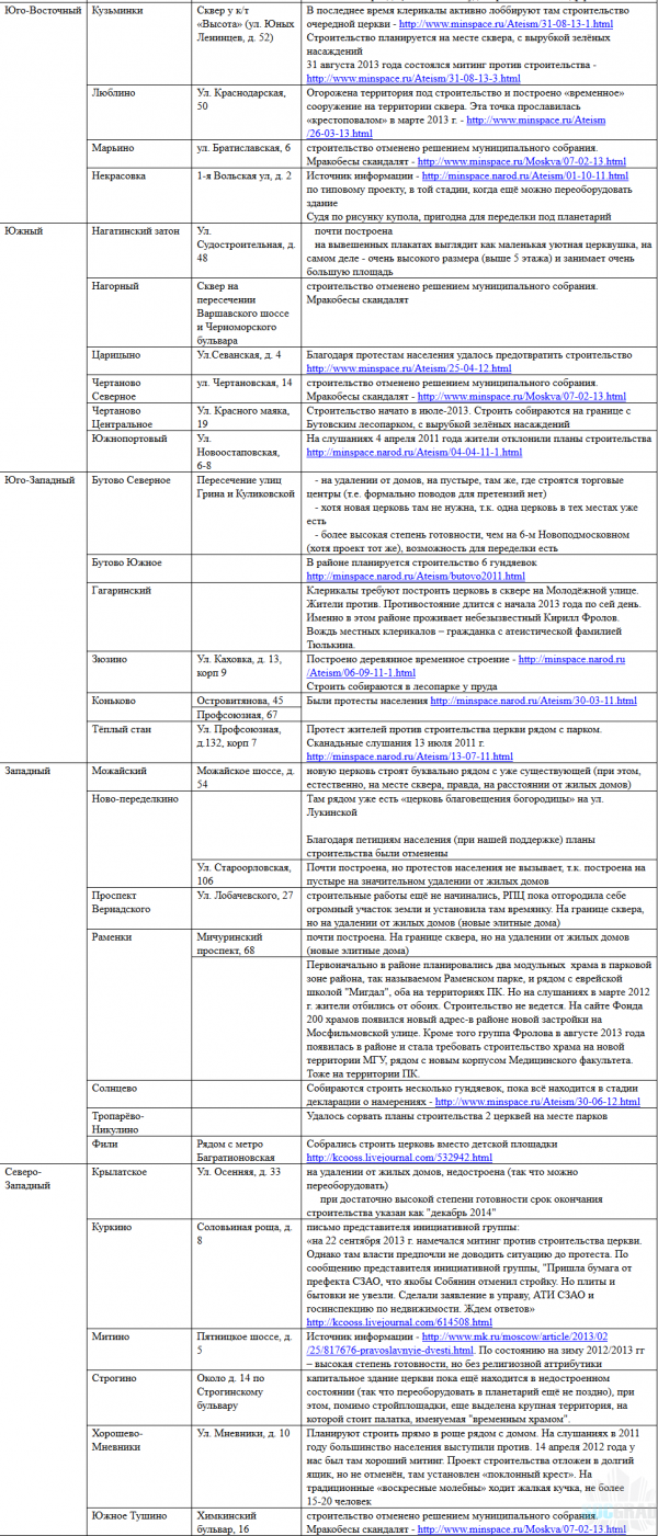 В Восточном Административном округа находится 78 церквей и монастырей и резиденция Патриарха (Метрополия). В Преображенском районе — 21, в Сокольниках- 16. На встрече с префектом ВАО 28 ноября т.г. жители выступали против строительства новых церквей в ВАО.