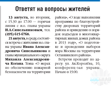 В целях обеспечения пожарной безопасности в жилых домах Северо-восточного округа, сотрудниками Управления по СВАО ГУ МЧС России по городу Москве организована работа по профилактике пожаров в жилом секторе. Эта деятельность включает в себя проведение разъяснительной работы среди населения по пожарной безопасности и действиям в случае возникновения чрезвычайной ситуации, распространение среди населения памяток и других наглядных пособий.В целях информирования населения, с июля месяца сотрудники надзорной деятельности совместно с журналистами «РИЦ Северо-Восток» проводят рейды по проверке соблюдения жителями района правил и норм пожарной безопасности.