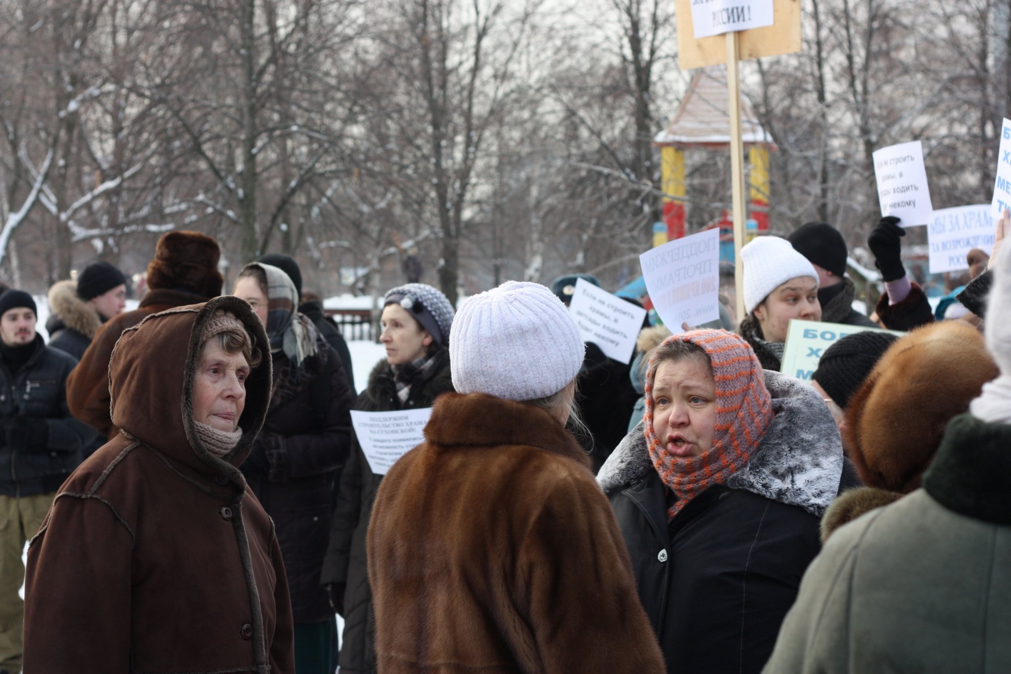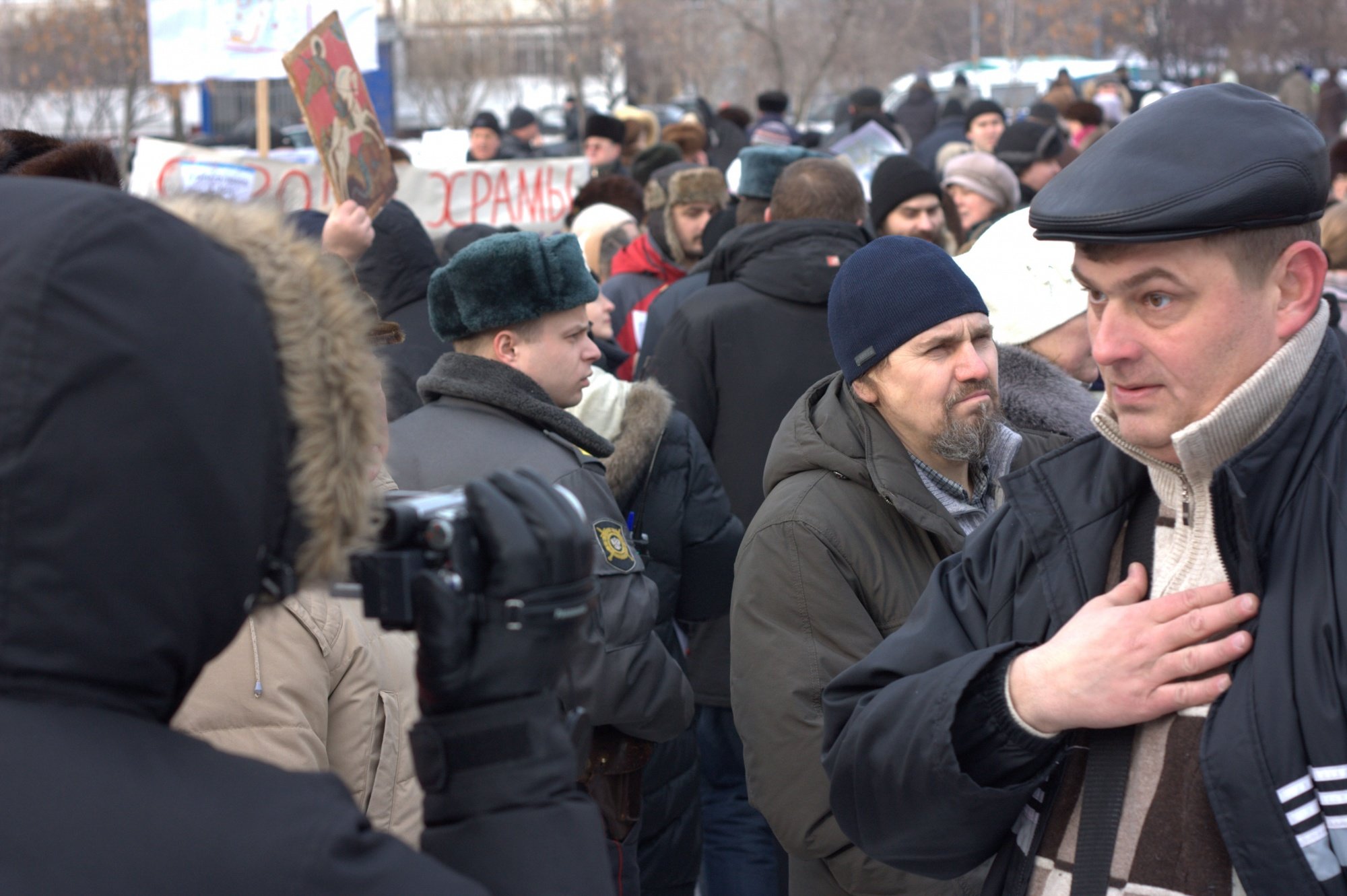 Был я на этом митинге (с дуру пошел с трехлетним сыном). В самом его начале пришли какие-то «звероподобные» люди — неопрятно одетые и дурнопахнущие женщины, в основном, преклонного возраста, мужики «с прогнившей капустой в бороде», похожий на бомжа ряжанный «а ля под казака», и похожий на попа. Развернули дурацкие плакаты типа: «Храму быть», «Меньше тюрем, больше храмов» и т.д. Оказалось — это представители православной общественности. И начался цирк! Вместо митинга… Мой вопрос — почем опиум для народа — раздался вой и стон. Далее гундяевцы всячески закрикивали выступающих, а полиция вместо того чтобы урезонить воинствующих «хоругвеносцев» спокойно наблюдала и снимала происходящее.