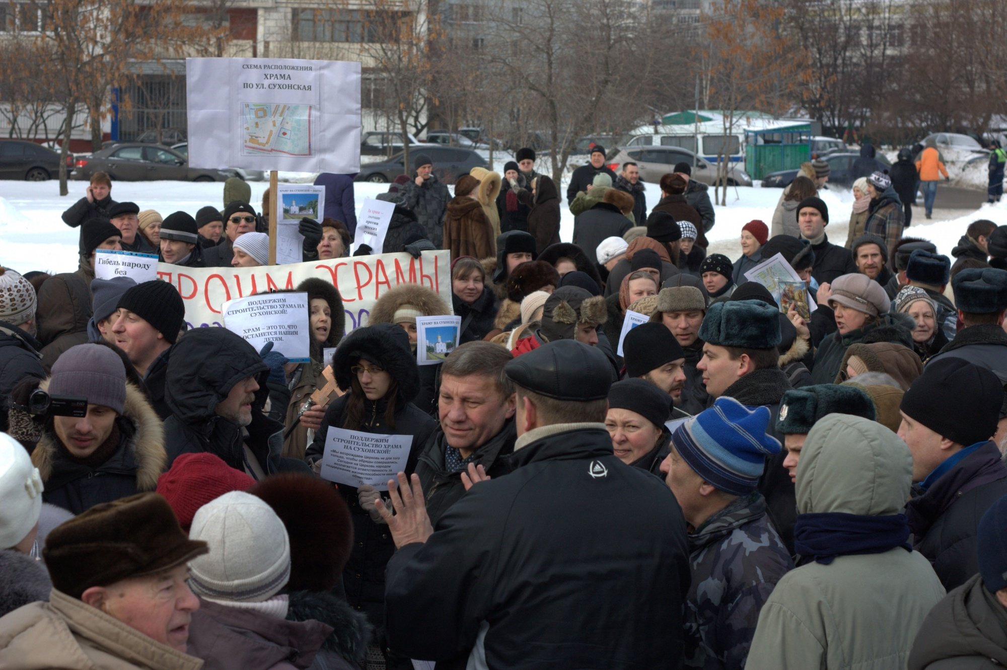 Вместе с тем власти округа убеждены, что выбор мест под возведение храмов РПЦ должен проводиться в полном соответствии с законом. Мы неоднократно заявляли — и в этом с нами солидарна РПЦ — что строительство храмов должно осуществляться исключительно при поддержке, одобрении со стороны местного населения. Если же происходят выступления протестного характера (со стороны тех, кто не согласен с выбором места под строительство), то их надо анализировать, находить решения и ни в коем случае не допускать противостояния и раздоров жителей на этой почве.
