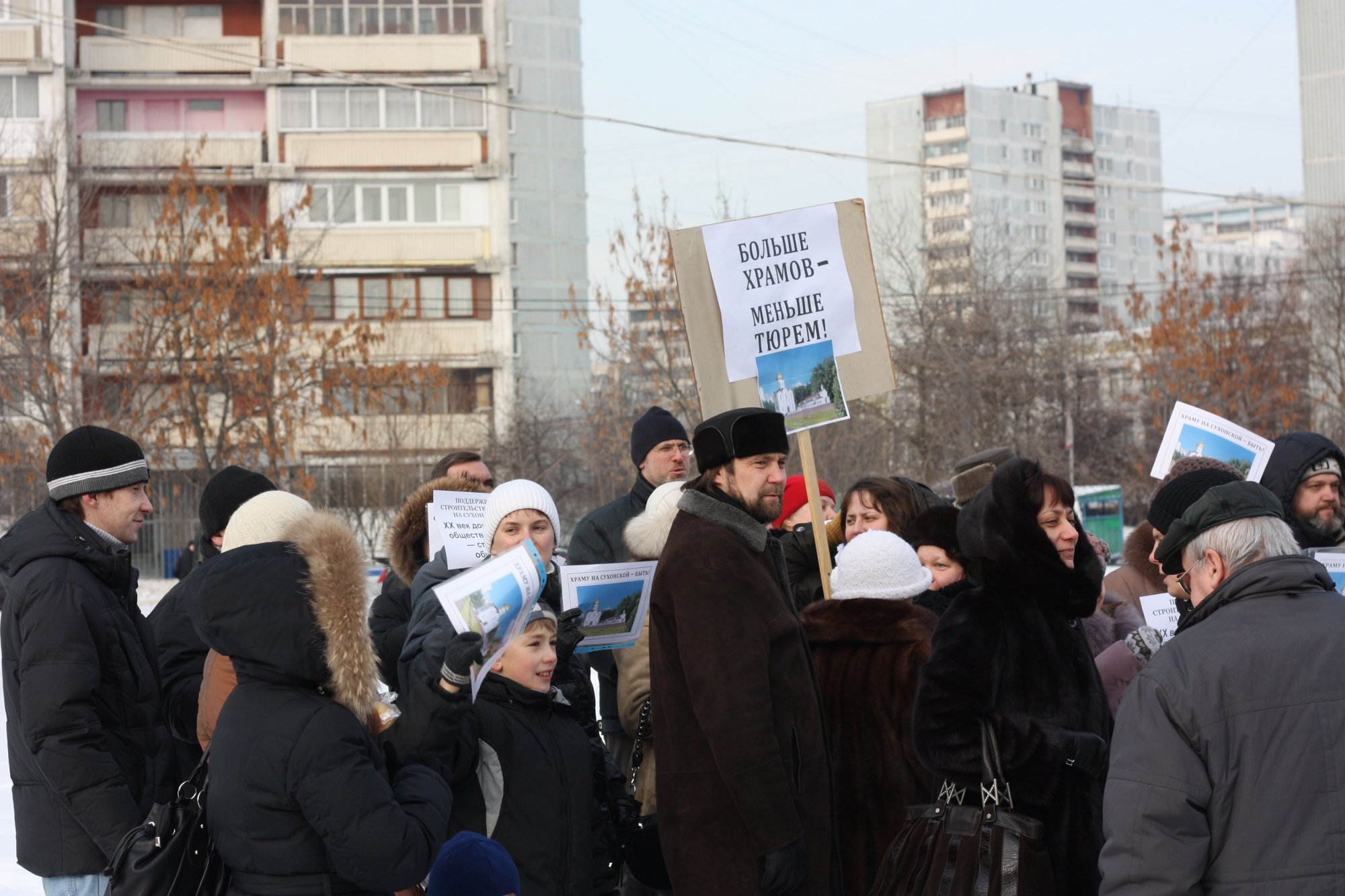 Говорю, что видел сам, мирно собрались люди высказать свое МНЕНИЕ, официально, ни кому не мешая, пожилые и молодые, НО — собралась «ТОЛПА за храм» (без обид, назовем их Прихожане), работающая по принципу «ниппеля» т.е. только в одну сторону, толпа всем мешающая, высказывающая свое и только свое мнение. «Мы хотим диалога»… Но диалог в их понимании — это монолог только с их мнением… Просьбы к ним дать послушать другое мнение, отойти и просто не мешать — либо отворачиваемся, либо начинаем грубить и задираться, перебивать, нести бред по поводу «ключей от квартиры..», (т.е. 12 стульев читали), задаю вопросы Прихожанам — в ответ ерунду начинают нести, т.к. вопросы задаются им конкретные и честные, соответственно и ответ должен быть — либо да либо нет, но в ответ бессмысленное мычание, т.к. варианта «воздержался от ответа» нет, надо выбирать, либо Свет либо тьма, серединка не проходит… Показательно — был Организатор митинга против строительства — который не прятался за спинами других и были организаторы «анти митинга» с бегающими глазками и резко отвечавшие «нет мы просто пришли»… «мы сами по себе...», «мы ни кого не знаем...» так какие же Вы Христиане? Раньше на костры шли во Имя Господа, а Вы смелости не имеете мне один на один в лицо ответить честно «Да, я пришел сюда для того-то...». Да какие Вы Русские люди — шедшие за Правду и Веру, если нет в Вас даже капли уважения к другим и их мнению? кто Вы, на заданные вопросы, вместо честного ответа — «Ну не знаем мы», грубящие и обзывающие остальных? не Имя Господа с Вами и не Писание. Храмы строились всем Миром, а не войной, строились открыто, а не втихую, строились с Верой, а не злобой, бранными словами и деяниями, строились жителями, а не «Варягами-горлопанами». А по поводу больше храмов — меньше тюрем, можно и поспорить. В ГУИНах 80-95 % сидящих — «украл мешок картошки» дали 3 года, потом как рецидивисту при «повторе» по максимум влепили «жрать не чего», врать то «сидельцам» резон есть, но не начальникам колоний. Есть там «сидельцы» раньше работавшие на «служителей культа» — отзывы к сожалению не лучшие, руки крутят работникам на Храмы наши Батюшки больше, чем бандиты и кредиторы… делайте выводы из сказанного сами, выжимать последнее умеют из людей — но Храм в пустыне не нужен