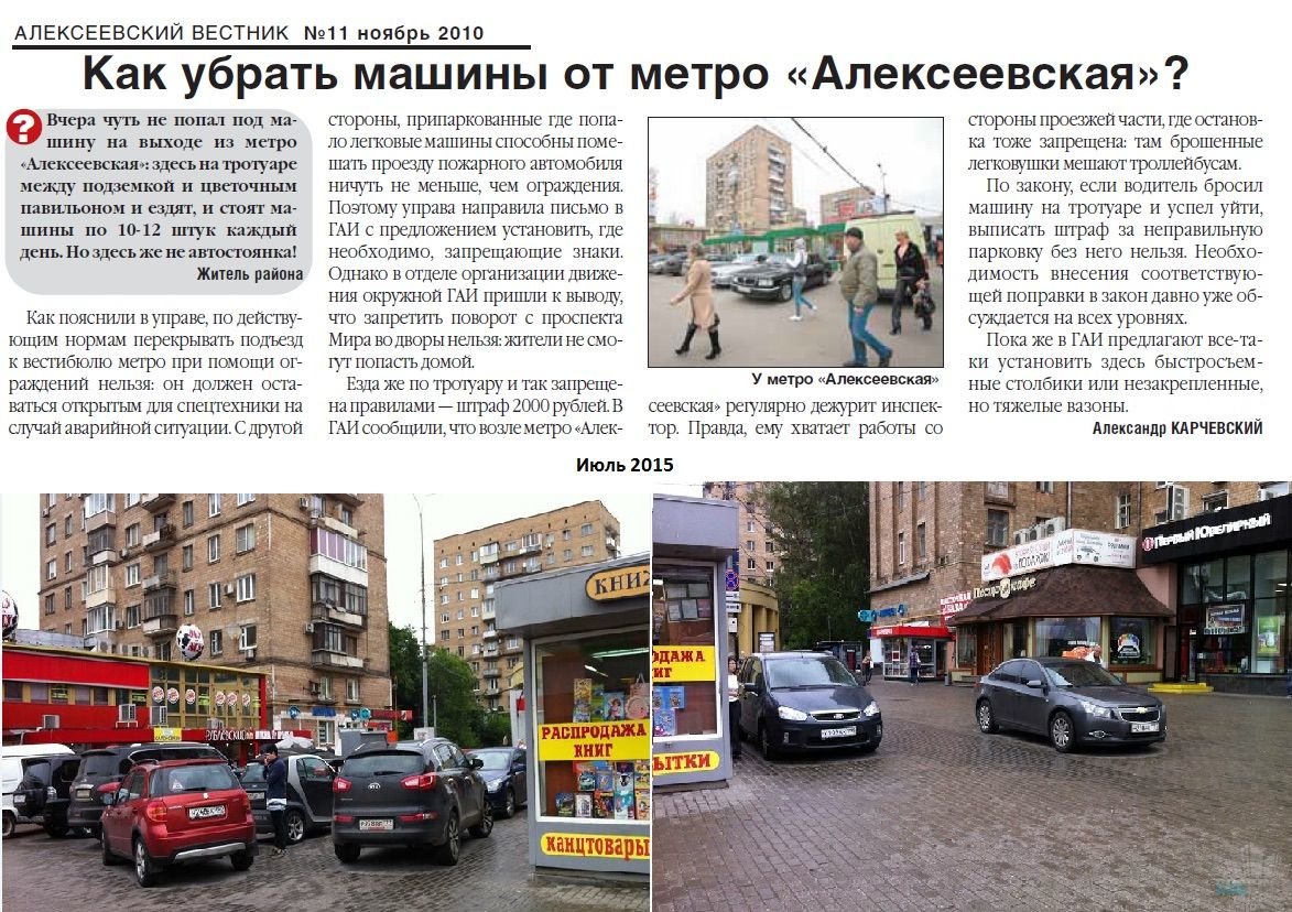 - Парковка вдоль проспекта Мира со стороны метро будет полностью ликвидирована! В настоящий момент вдоль домов 112-116а паркуются более 100 автомобилей. Также не будет возможности остановки для посадки/высадки пассажиров!