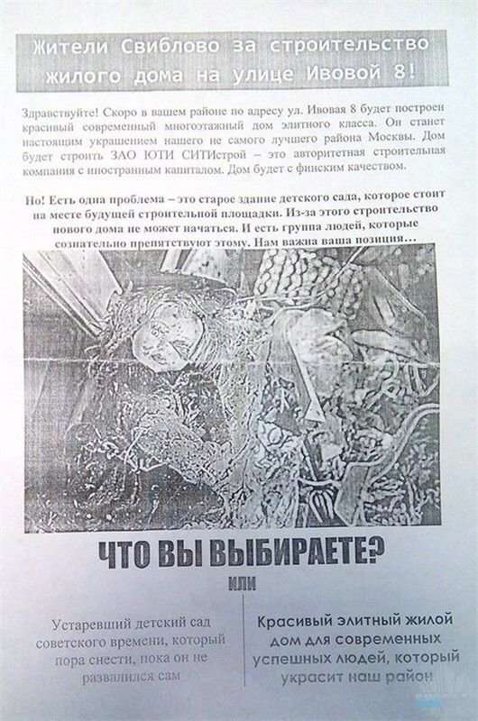 Наш район ждет очередная элитная жилая застройка, причем «непонятно чего», т.к. никто не знает что-же мы обсуждали в ходе так называемых публичных слушаний. Может это будет две башни по 9 и 16 этажей, а может и что-то другое… Одно можно сказать с уверенностью: ОРДЕРА РАЗРЕШАЮЩЕГО СТРОИТЕЛЬСТВО, У ЗАСТРОЙЩИКА В НАСТОЯЩЕЕ ВРЕМЯ, НЕТ! (по крайней мере о нем ничего не сказано на сайте МОССТРОЙНАДЗОРА (http://stroinadzor.mos.ru/).