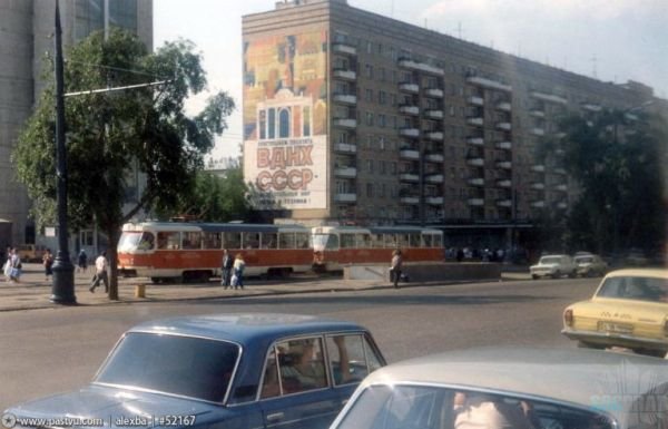 Проспект Мира напротив метро Алексеевская. 1990 год.