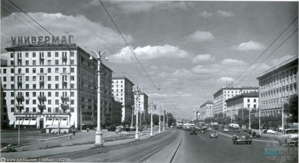 Ярославское шоссе (Проспект Мира) в районе домов 120-122. Фото Наума Грановского. 1957 год