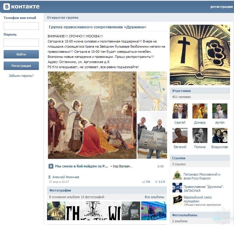 Силовое прикрытие акций православных в этом сквере обеспечивает Группа православного сопротивления «Дружина». Свои действия они курируют через Группу в социальной сети.
