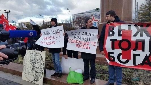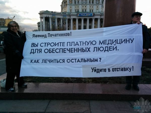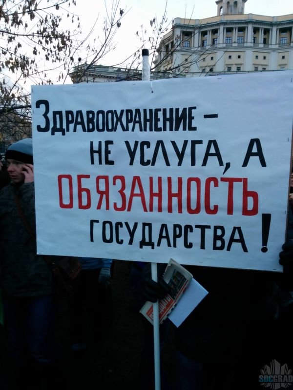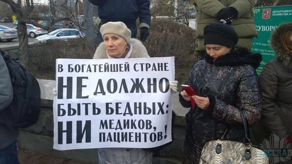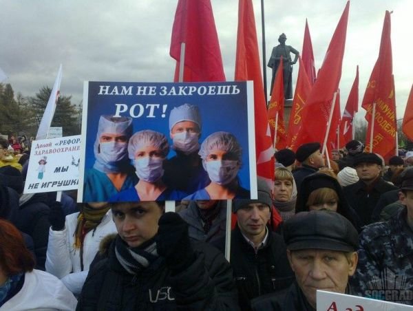2 ноября 2014 года на Суворовской площади в Москве состоялся митинг против массовых сокращений врачей и закрытий медицинских учреждений.