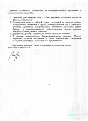 Также считаем, что проекты межевания содержат множество неточностей и ошибок, которые ущемляют права жителей района и требуют обсуждения и исправления в рабочем порядке с привлечением жителей района, муниципальных депутатов, других заинтересованных лиц, а также заказчика проекта межевания (Департамент городского имущества) и проектировщиков.