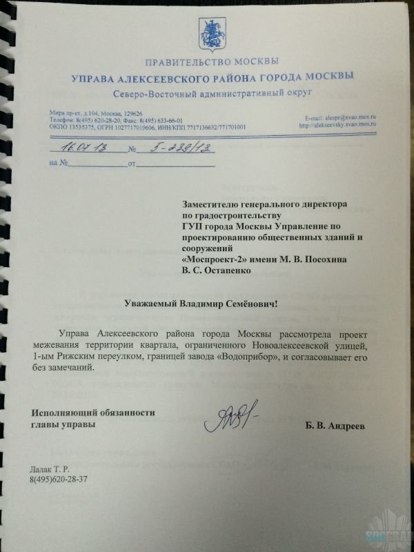 - Домам по Новоалексеевской улице №18 корп.1 и 2 и №20, а также домам по 1-му Рижскому переулку №2 корп. 2 и №2 корп.4 выделяются земельные участки «меньше нормативно необходимого размера территории».