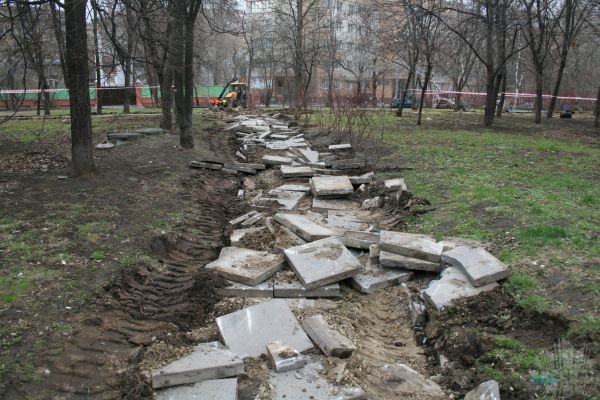 Подрядчик говорит, что по контракту должны закончить к 10 августа. Так что впереди 4 месяца разрухи. Кстати, со слов начальника строителей эта фирма выиграла еще несколько конкурсов на благоустройство — школы и дворов. Все в СВАО.