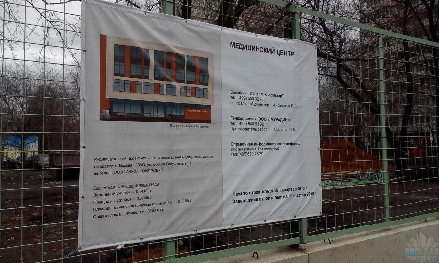 Интересна история этого проекта строительства. Во времена Лужкова этот участок (14 соток) был предоставлен для строительства «многофункционального здания с подземной автостоянкой на 38 машиномест и минипекарней общей площадью 5270 кв. метров». Понятно, что это должен был быть очередной торгово-офисный центр, а слова «минипекарня» в названии были придуманы специально, чтобы усыпить бдительность местного населения. Чуть позже «минипекарня» площадью 5270 кв метров с подземной автомтоянкой трансформировалась в «объект лечебно-оздоровительного назначения».