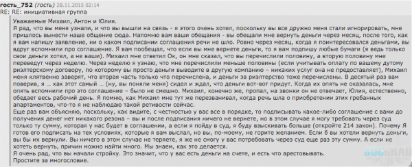 Далее представлены скриншоты комментариев лишь только с одного из форумов по продаже апартаментов в клубном доме на Бориса Галушкина 10. Сколько еще таких обманутых покупателей пока неизвестно.