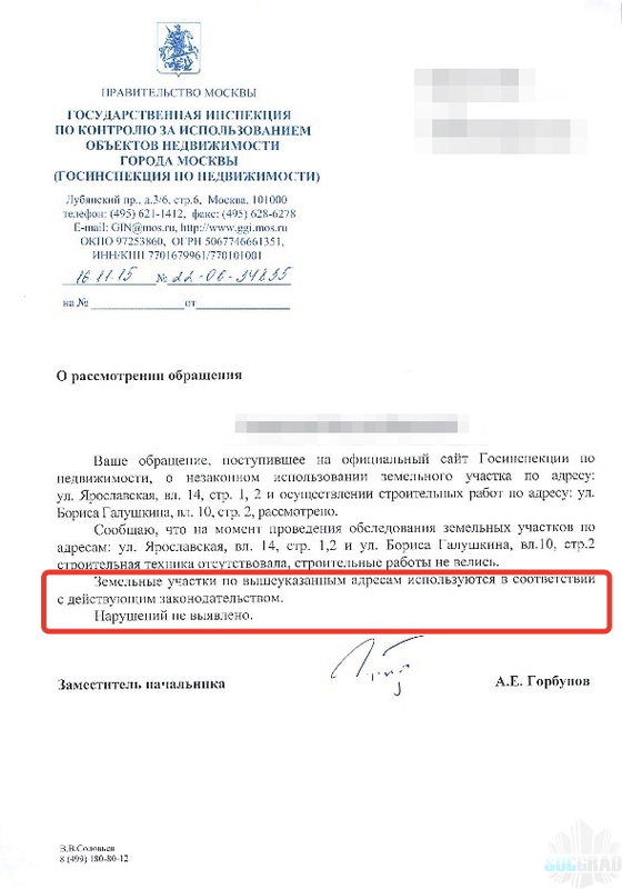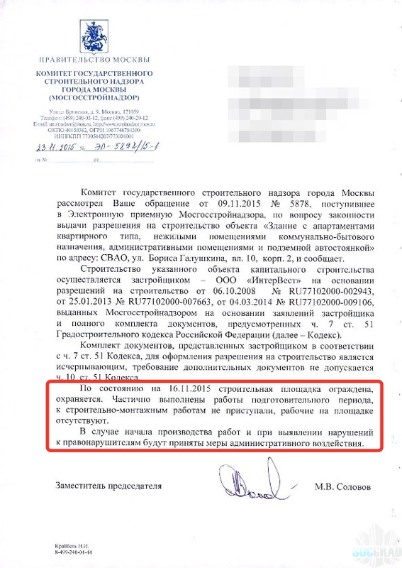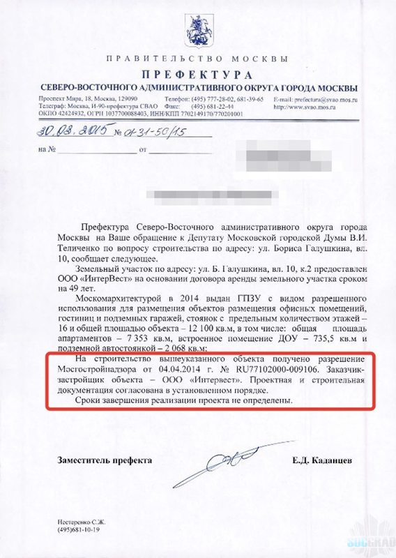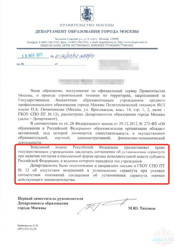 В то время, как честные чиновники беспристрастно изучив документацию ООО «Интервест» приостанавливают ордер на обустройство строительной площадки и отказывают в оформлении сервитута на проезд через колледж № 13. Другие уже «слепые» чиновники занимаются формальными отписками на обоснованные обращения москвичей. Некоторые ответы «слепых» чиновников достойны юмористских сайтов и подборок абсурдистих приколов.