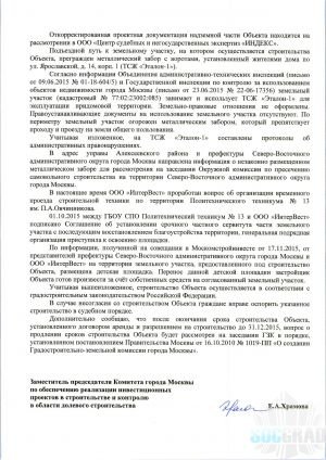 Прошла неделя после согласительной комиссии, но ООО «Интервест» не предоставило ни одного нового и официально согласованного документа на строительство в управу Алексеевского района и в Префектуру СВАО.