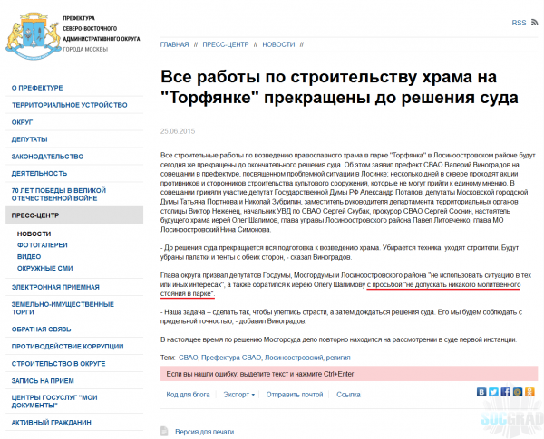 Но техники на стройке и так нет, ибо жители её туда не пропускают. Ко всеобщему разочарованию, в документе ничего не сказано про уничтожение забора, которым сейчас огорожена территория стройки. При этом НЕСМОТРЯ НА ПРОСЬБУ ПАТРИАРХРА покинуть стройку, православные активисты продолжают там жить. Поэтому рейтинг доверия заявлению префекта близок к нулю!