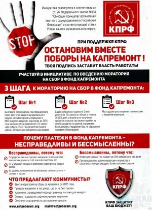 Создать инициативную группу и начать кампанию по сбору подписей на введение моратория на капремонт. По закону надо собрать 3% подписей от числа жителей вашего района, обладающих избирательным правом.