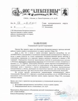 Автор, подготовивший эту статью, замечательный человек, но в целях безопасности я не буду называть его имя. Он действительно обращался в окружное управление ГИБДД по факту парковки автомобилей на тротуарах в нашем районе, в том числе и служебных автомобилей главы управы и руководителя администрации муниципального округа Алексеевский у входа в здание проспект Мира д.104.