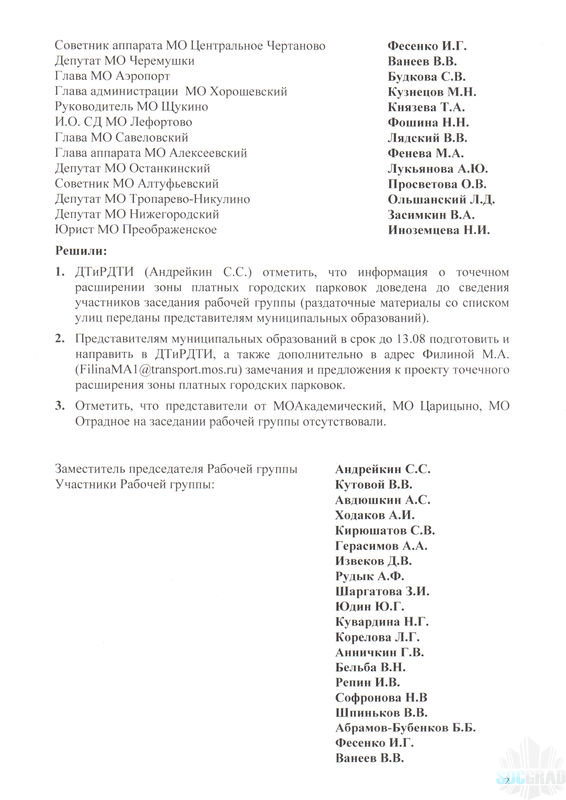 Протоколы встреч рабочей группы, на которых обсуждался первый этап расширения зоны платной парковки, которое произошло с 10 октября.
