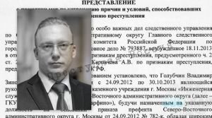 Голубчин, по версии Лебедева, будучи руководителем «Инженерной службы Марфино», установил коррупционные связи с учредителями и сотрудниками группы компаний, более восьми лет работающих в районе (ООО «Комсервис», ООО «У Выставки», ООО «МП Маруся», ООО «Грандландшафт», ООО «КСС», ООО «Экспертзеленстрой»).