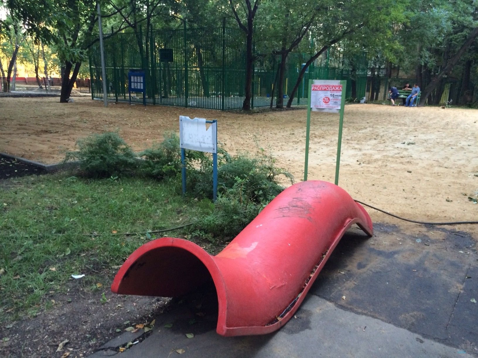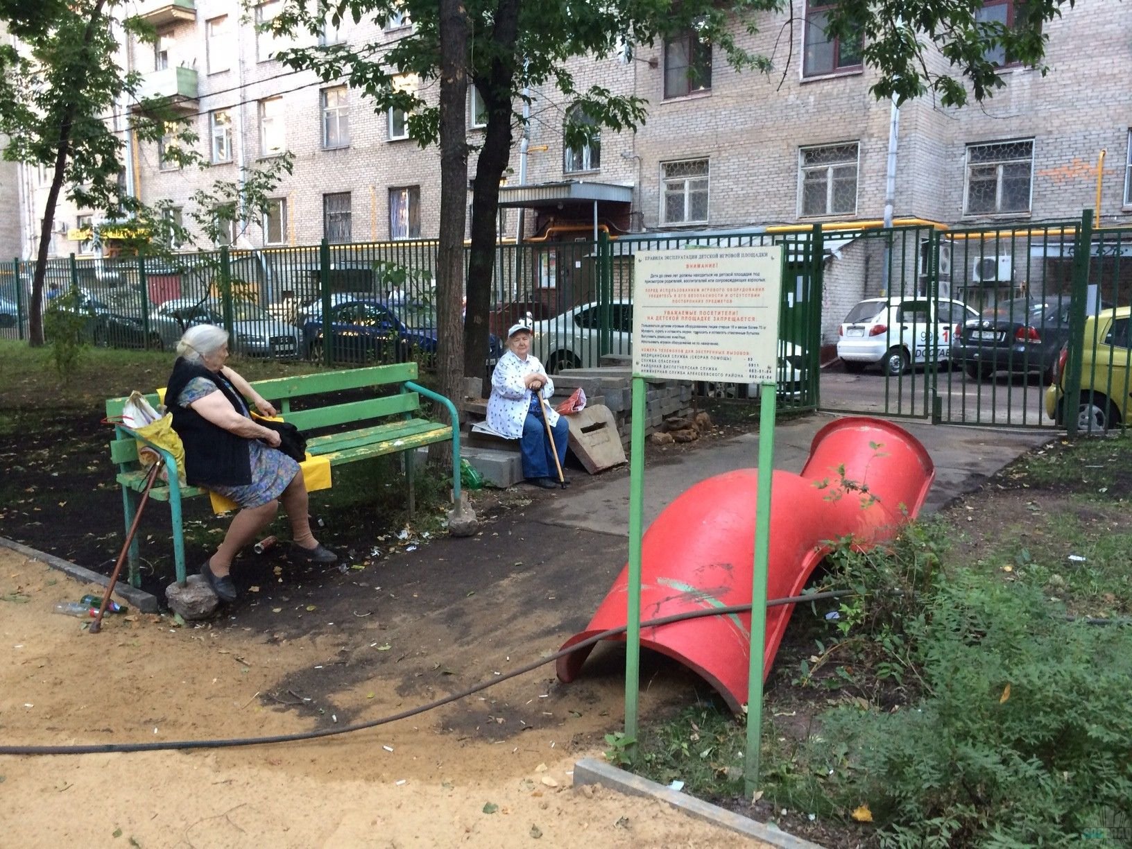 Начало Лосиноостровского района, улица Малыгина. Возле корпуса 1 дома 14 вижу: три лавочки, старая железная горка — привет из советского прошлого, покрытый жёлтой краской. В песочницу явно давно не ступала нога ребенка, поскольку растительность в ней довольно буйная и даже не притоптанная. Мимо идёт местная жительница Анна с пятилетним сыном Ваней.