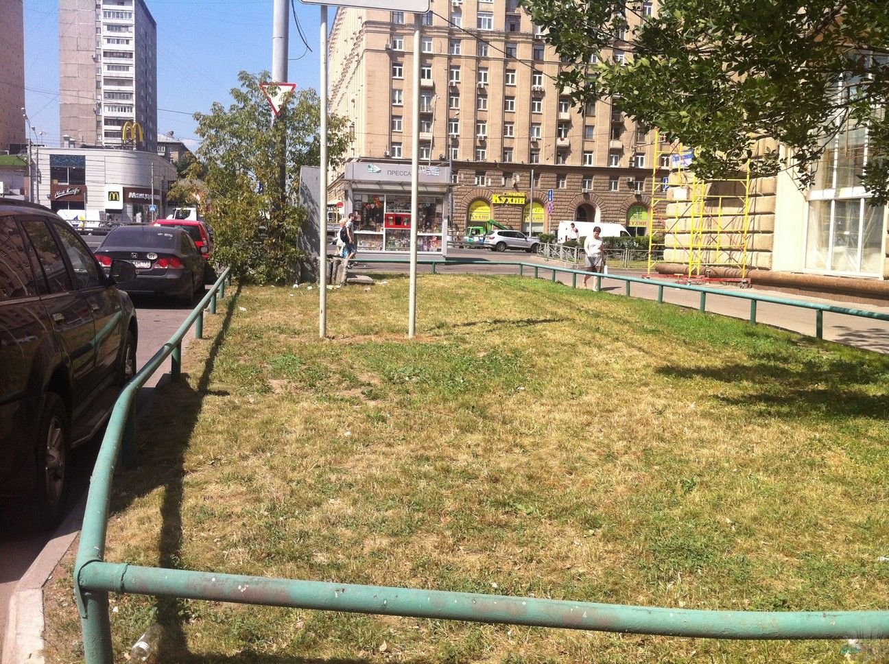 Как оказывается, никакого надлежащего ухода за газонами нет. Траву стригут под корень, из-за чего трава не может нормально подняться. Газоны никто не поливает. Траву не подсеивают – на газонах проплешины. Фотографии ниже говорят сами за себя.