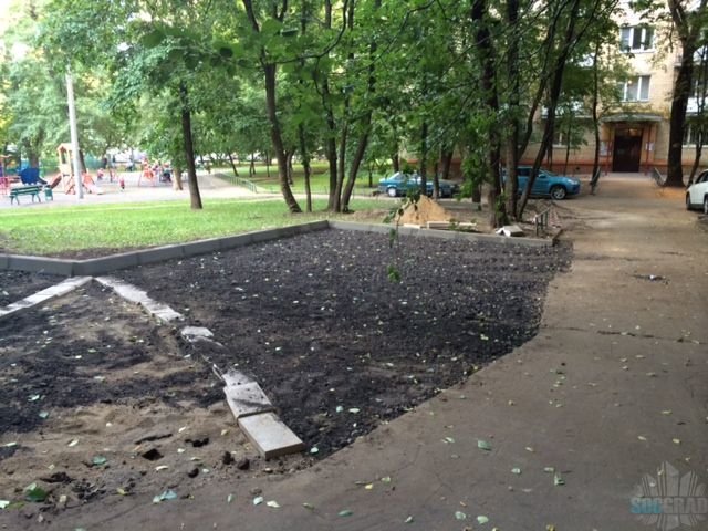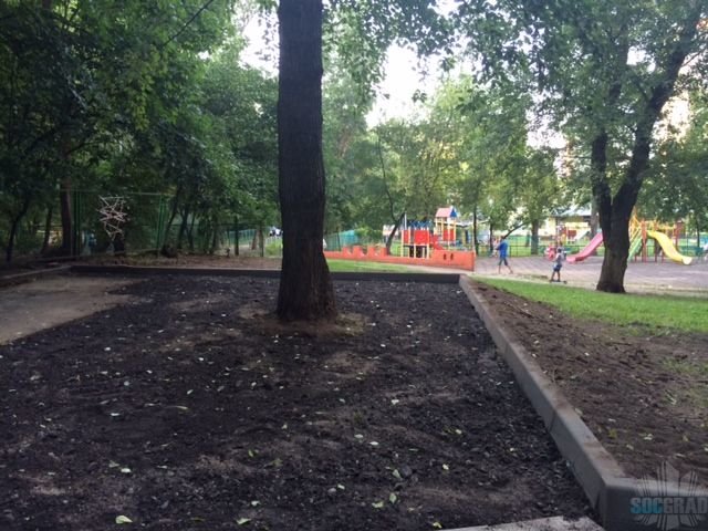 Похоже, что строительство парковочных карманов на месте газонов и зелени становится массовым явлением в Алексеевском районе. Не успела утихнуть майская история со строительством парковочных карманов вдоль районных улиц, как строительство новых парковочных карманов добралось до газонов во дворах. Так, на дворовой территории между домами 3А и 5А по Новоалексеевской улице, примыкающей к детской площадке ведутся работы по строительству парковочных карманов. В результате ради размещения 6 машин сокращается площадь озеленения (газоны уменьшаются), стволы деревьев закатываются в асфальт. Горка за домом 3А, с которой зимой дети катаются на санках за счет асфальтирования парковочных карманов уменьшается в 2 раза. Машины будут припаркованы фактически вплотную к детской площадке.