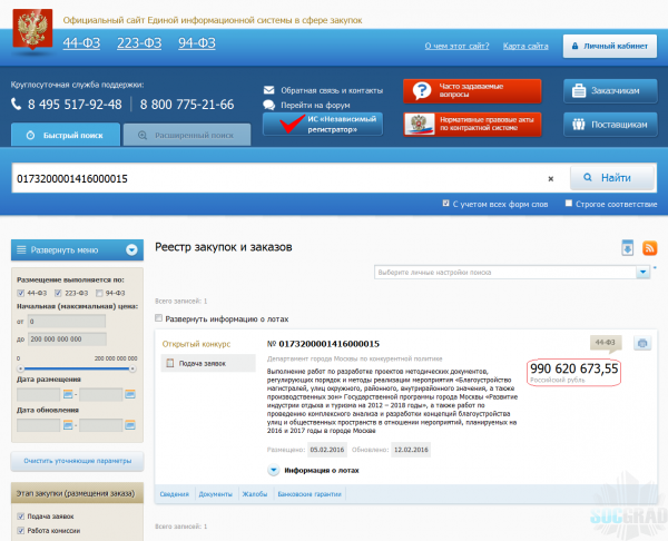 Департамент города Москвы разместил извещение о проведении открытого конкурса на один миллиард
