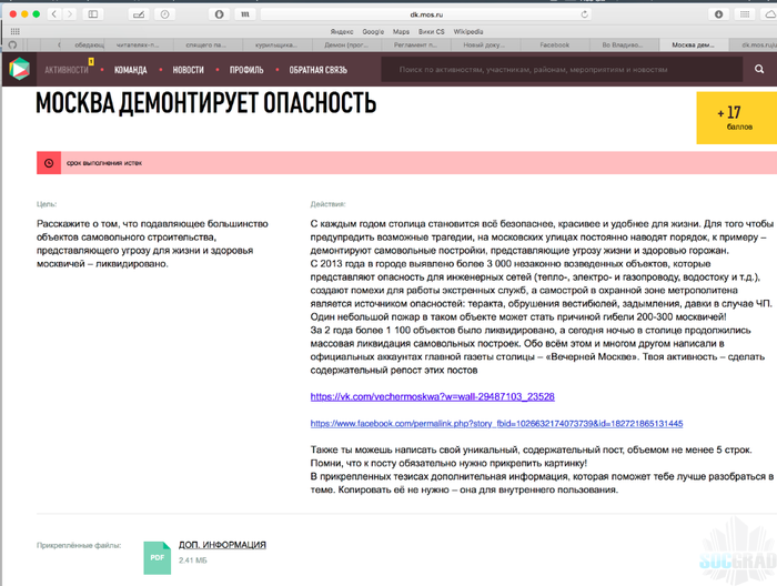 Как бы не новость что молодежные парламенты районов созданы по распоряжению мэрии и обеспечивают пиар всех решений властей. Но стали известны интересные подробности. Система «Движок» это платформа где молодежные парламентарии зарегистрированы и получают задания от кураторов. За пиар они получают баллы. Чем больше баллов, тем больше перспектив карьерного роста, вплоть до мундепа и кадрового резерва Москвы. Вообщем не думай чувак, за тебя думал Собянин. Будь верным собянинцем, и прорвешься в люди.