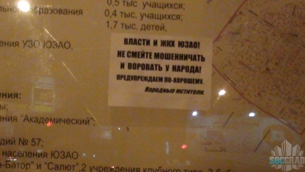 Эти листовки появились во многих местах ЮЗАО за прошедшие выходные.