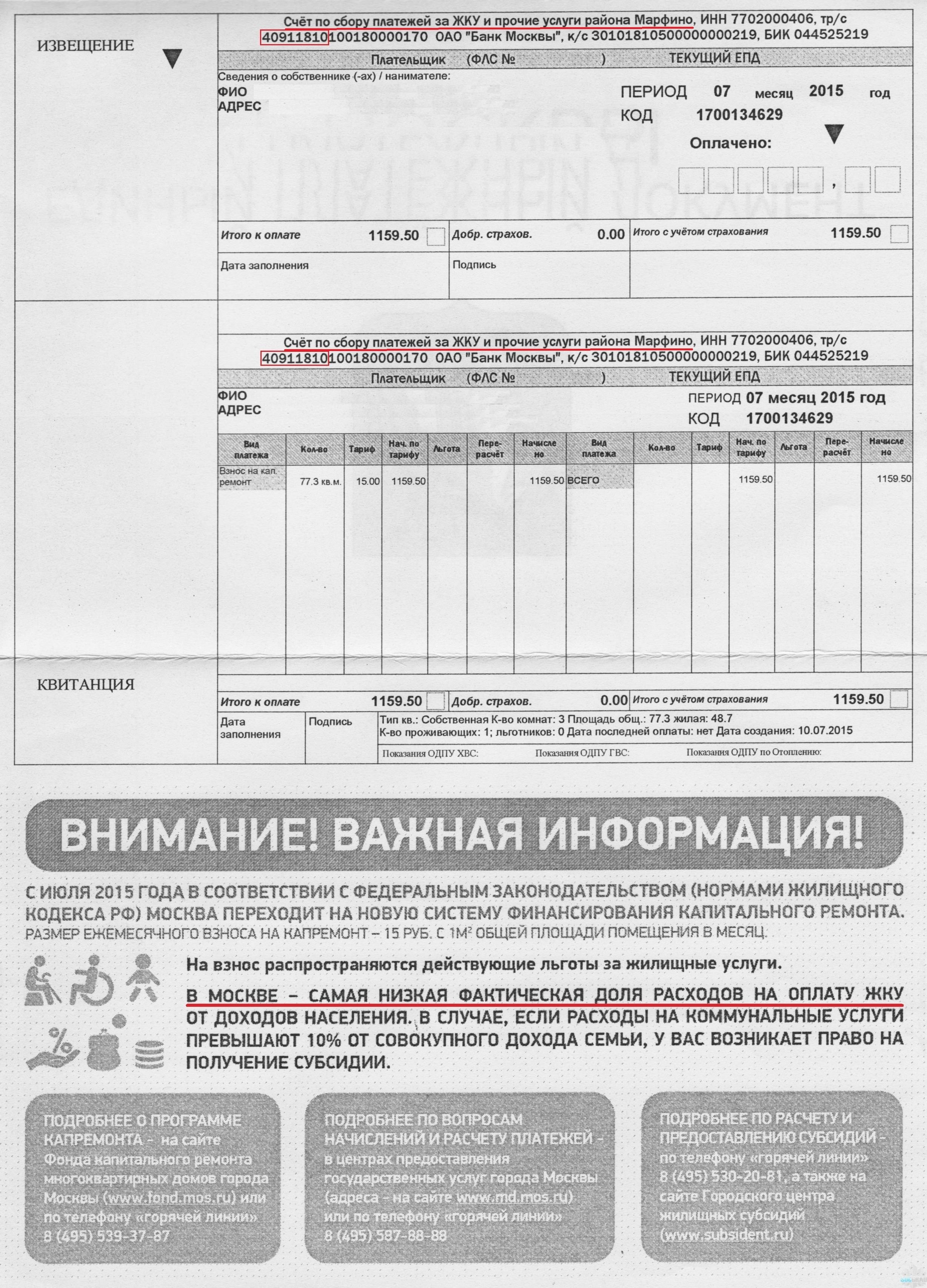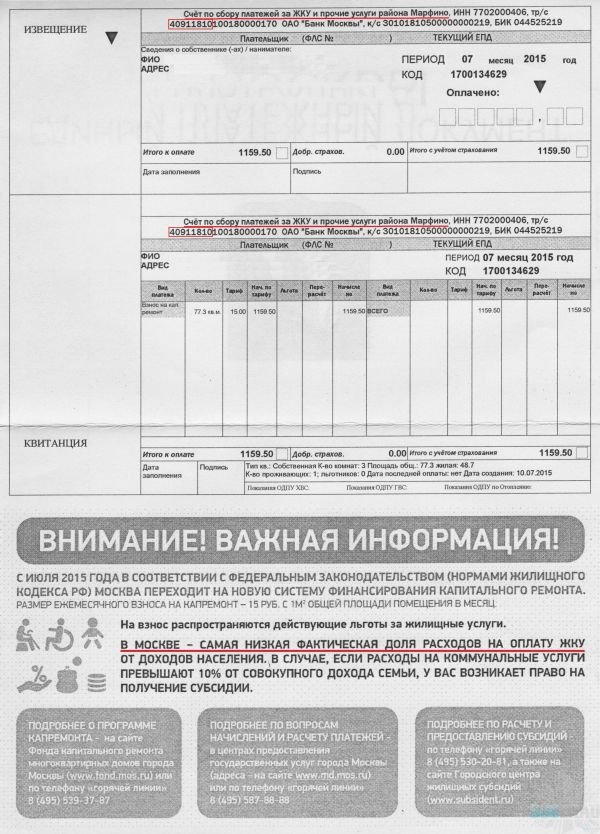 Новая квитанция - взнос на капремонт в ЕПД
