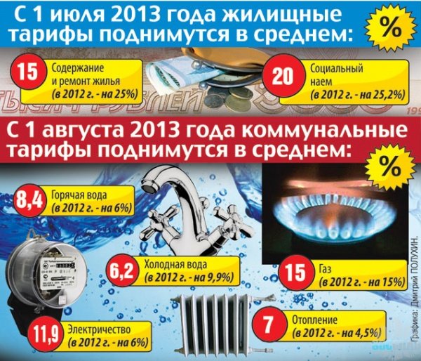 Цены на коммунальные услуги увеличатся в среднем на 7 — 10 процентов