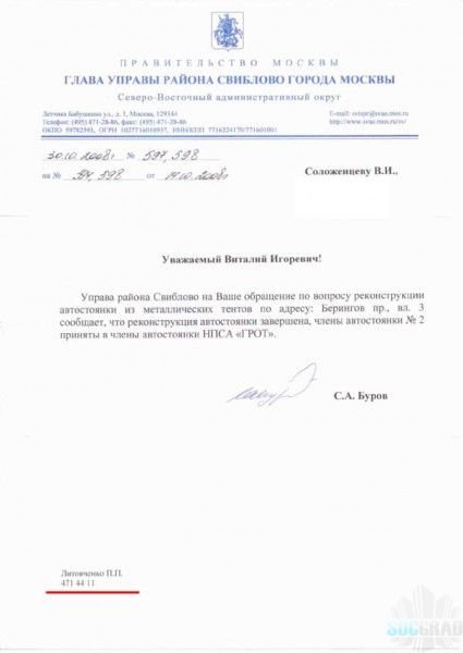 По счастливому совпадению этот предприимчивый гражданин одновременно был и главным специалистом по гаражно-стояночному хозяйству Управы района Свиблово. Той самой, которая и вынудила людей начать благоустройство. Действовала управа настолько нагло, что этот же Литовченко готовил ответы Главы управы на вопросы по этой же стоянке.