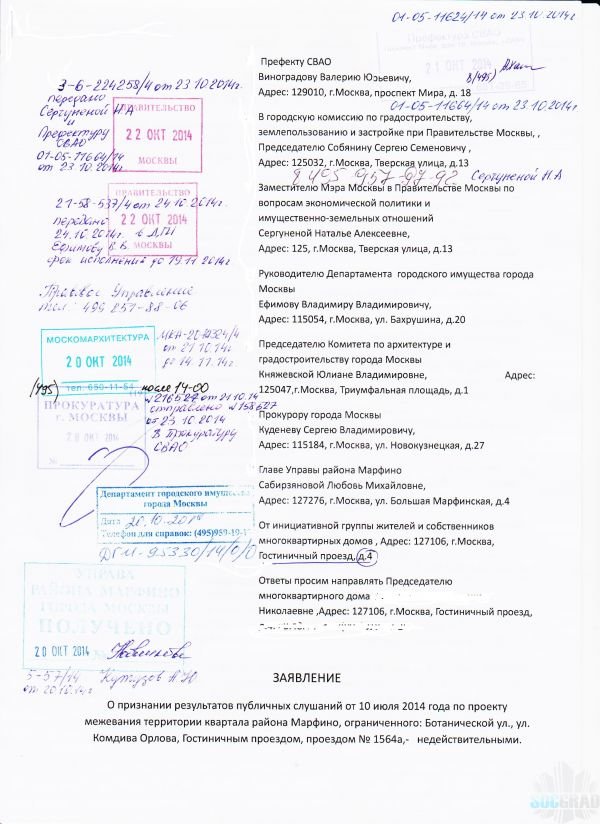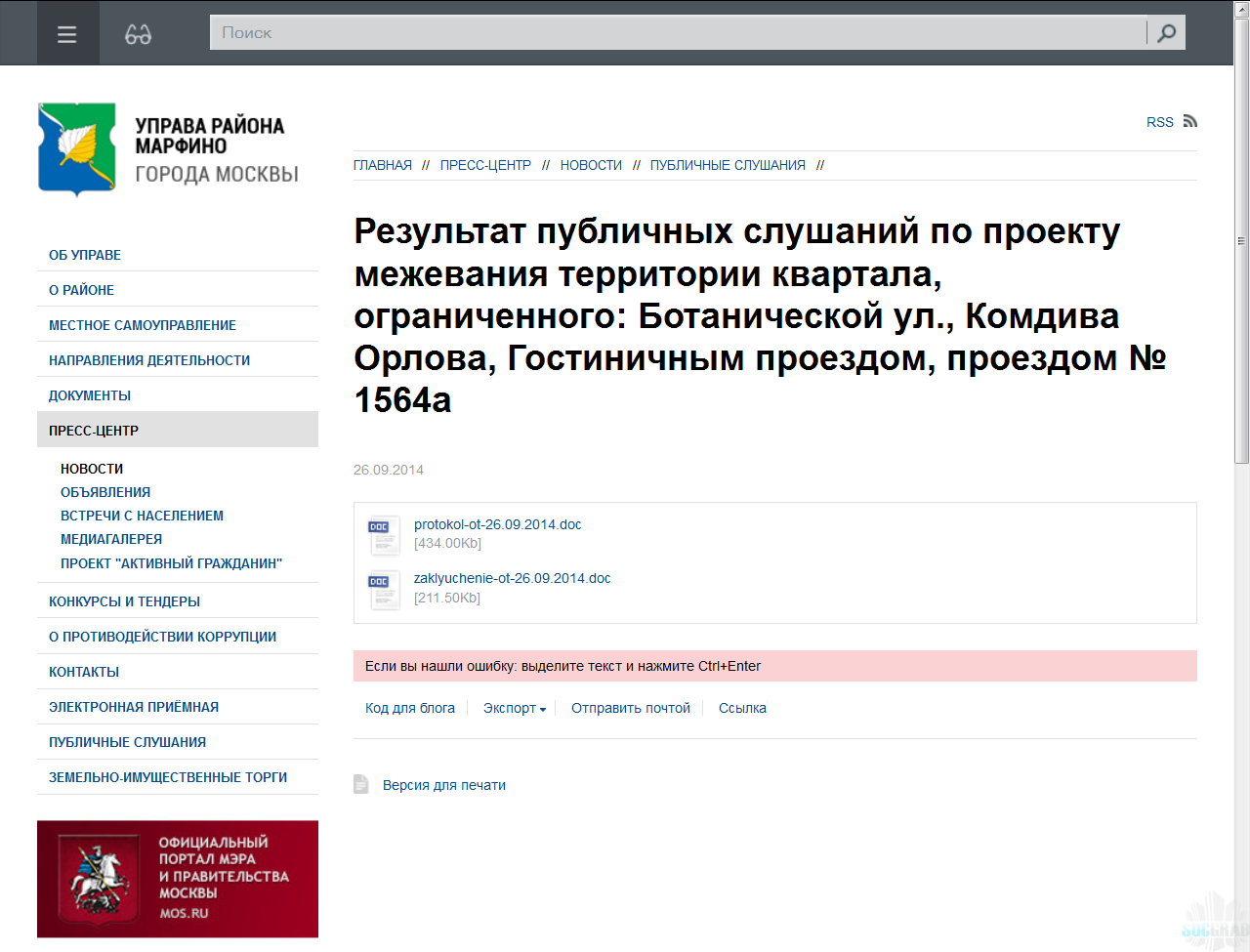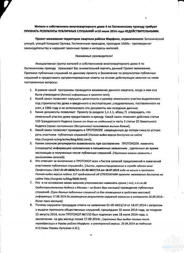 — был опубликован 26 сентября 2014 года на официальном сайте района Марфино и очень удивил своим содержанием.